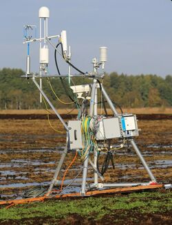 Einen Tag und drei Personen hat der Aufbau gebraucht, natürlich plus viele Vorarbeiten vom Testbetrieb der Geräte im Labor, dem Verlegen von Stromkabeln zum Standort im Gelände oder dem Bau einer einfachen Plattform aus Brettern. Allein der Aufbau des Tripods dauerte vier Stunden. Anschließend wurden Stromkästen und Datenlogger am Turm befestigt, die für die Kommunikation der Instrumente untereinander verantwortlich sind. Dazu zählen CO₂- und Methan-Sensoren, Kamera, Ultraschall-Anemometer und Router, der die Daten nach außen überträgt. Jedes Instrument verfügt über eine eigene IP-Adresse für den Remote-Zugriff. Dieser ermöglicht nicht nur das Abrufen, sondern auch das Steuern der Instrumente – eine Besonderheit dieses Eddy-Turms, die über den Standard hinausgeht. Am Folgetag war nur noch etwas Feintuning nötig, um Winkel, Abstände und Ausrichtung der Sensoren optimal einzustellen. Jetzt funkt der „Eddy“ und erste Auswertungen erwarten die Wissenschaftler*innen in ungefähr einem Monat.