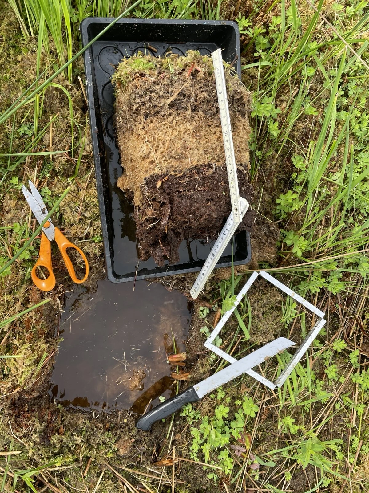 Um die Vegetationsentwicklung und den Biomasseaufwuchs bestimmen zu können, führen wir Messungen und Probenahmen am Torfmoosrasen durch. Diese Daten dienen zudem zur Entwicklung und Validierung einer automatisierten Kartierungsmethode für die einfache großflächige Bestimmung des Torfmooswachstums (Deckung und Biomasse). Die Untersuchungen zur Vegetationsentwicklung und den Biomasseerträgen erfolgen auf Flächenabschnitten in unterschiedlichen Produktionsphasen, um Etablierung, Wachstum, Regeneration nach der Ernte mit verschiedenen Pflegemahdszenarien und Erntemethoden zu untersuchen sowie Erfolgskontrolle nach Techniktests durchzuführen. Zudem nehmen wir wachstumshemmende Faktoren wie Pilze auf. Die Ergebnisse fließen in die Erarbeitung von Handlungsempfehlungen für das Handbuch zur Torfmoos-Paludikultur ein.